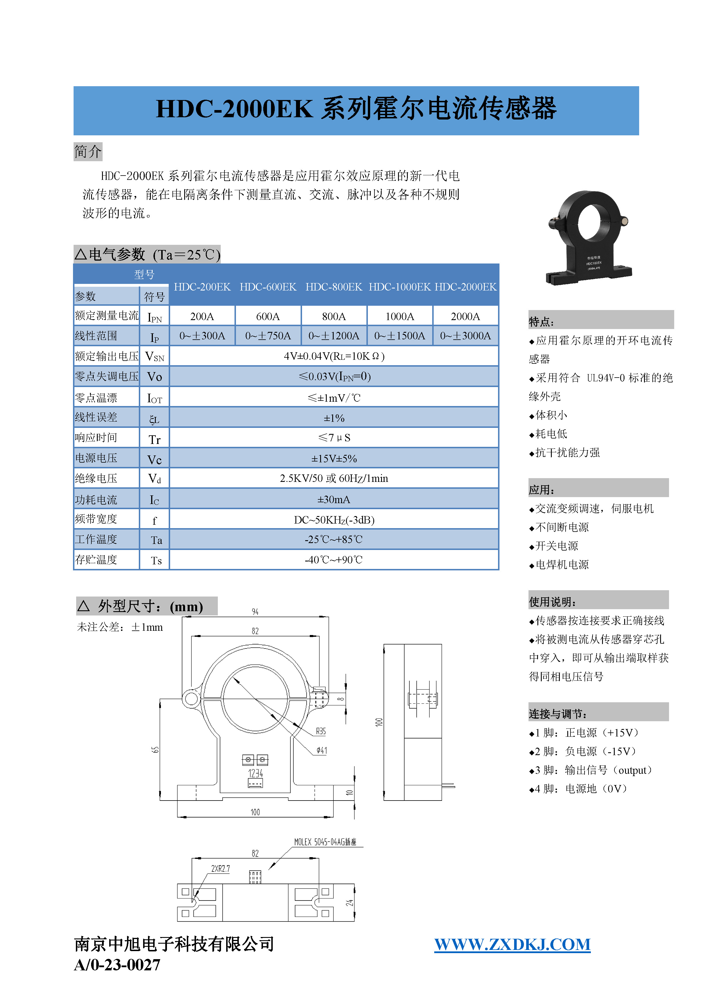 HDC-1000EK系列霍爾電流傳感器是應(yīng)用霍爾效應(yīng)原理的新一代電流傳感器,能在電隔離條件下測(cè)量直流、交流、脈沖以及各種不規(guī)則波形的電流。
