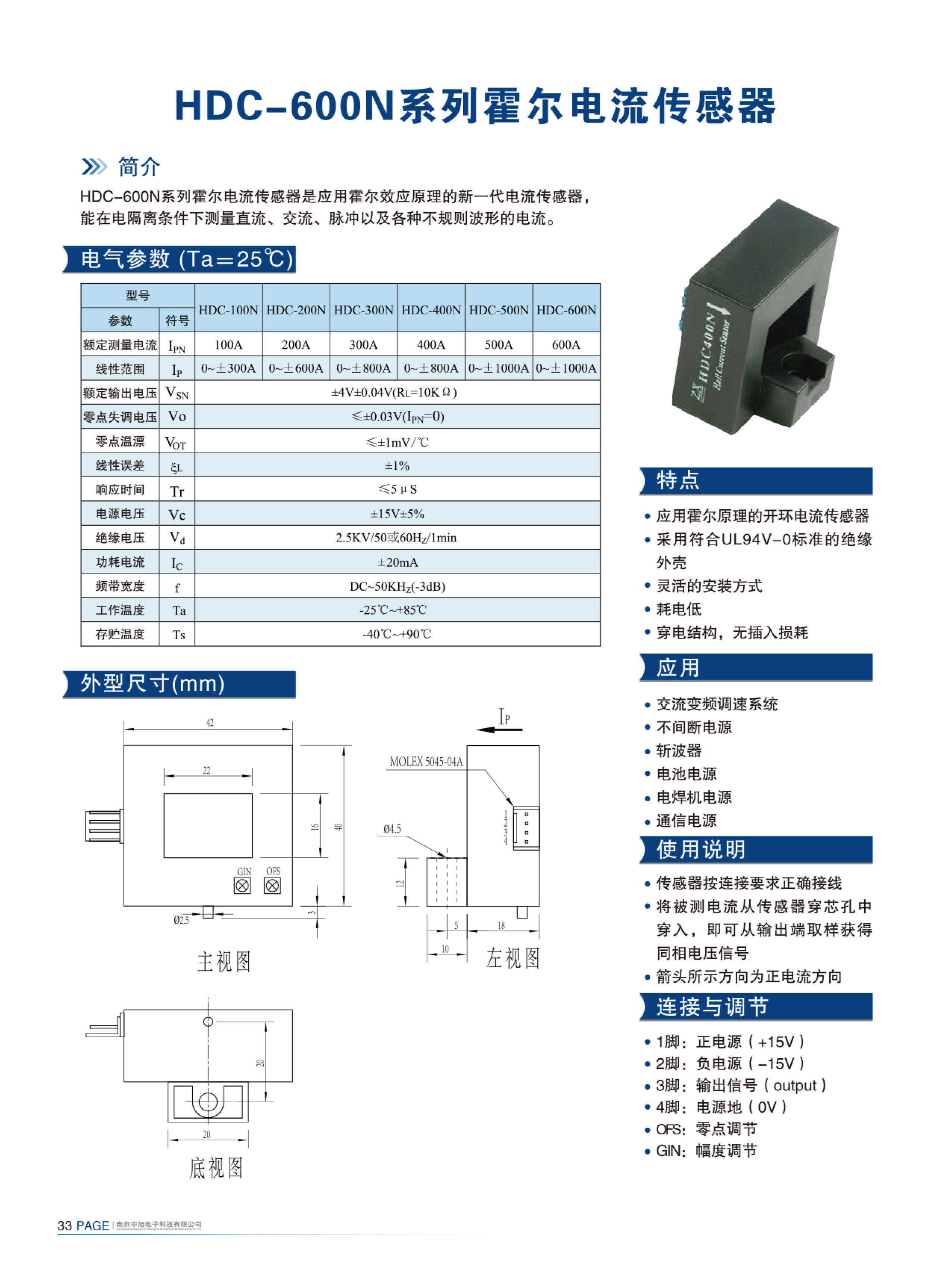 HDC-600N系列霍爾電流傳感器是應(yīng)用霍爾效應(yīng)原理的新一代電流傳感器,能在電隔離條件下測(cè)量直流、交流、脈沖以及各種不規(guī)則波形的電流。