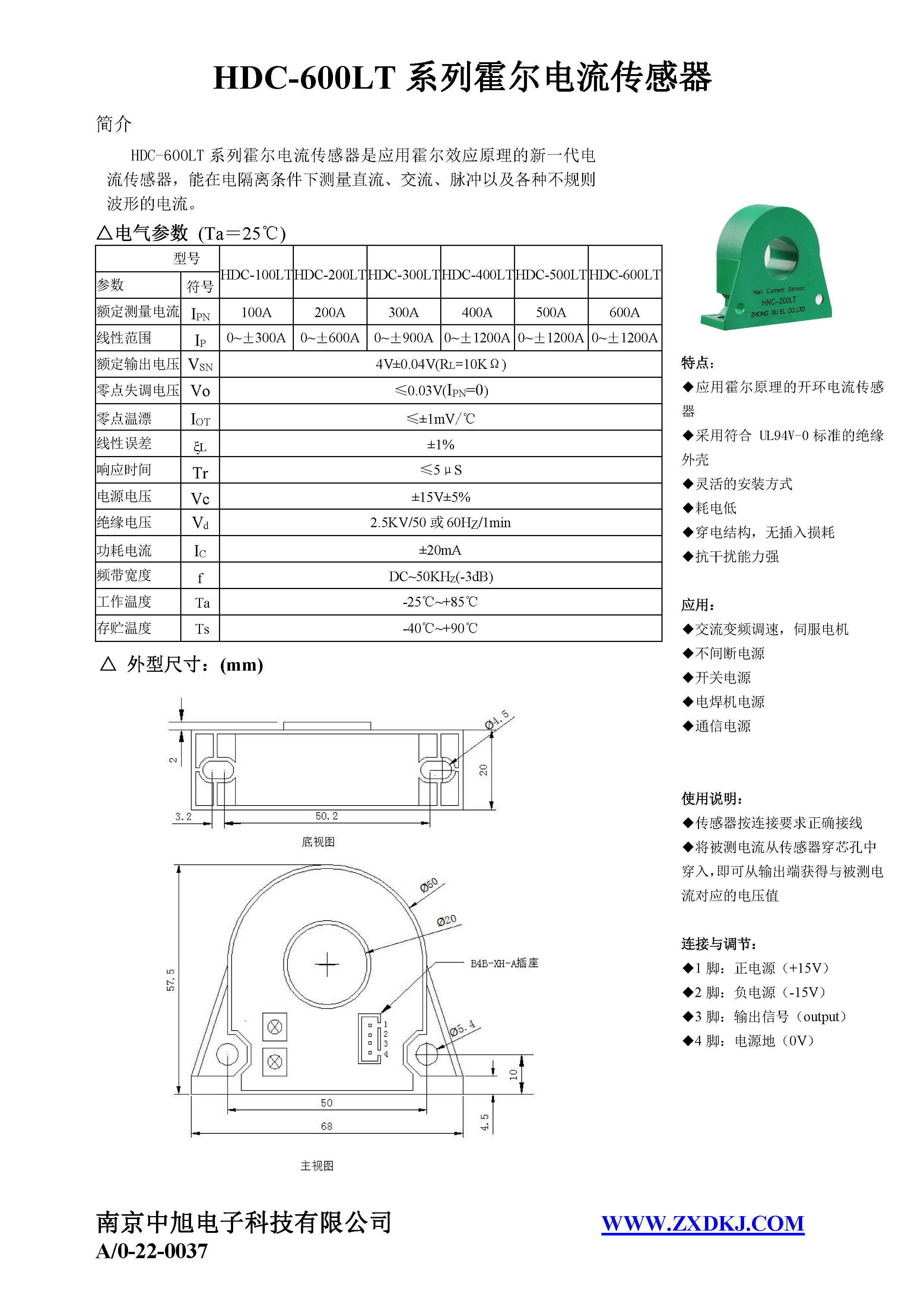 HDC-600LT系列霍爾電流傳感器是應用霍爾效應原理的新一代電流傳感器,能在電隔離條件下測量直流、交流、脈沖以及各種不規(guī)則波形的電流。